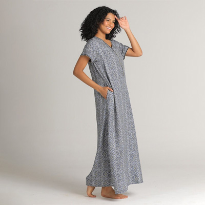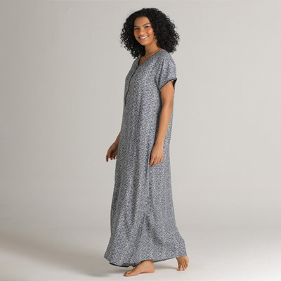 "Gift yourself a relaxing sleep by slipping into this super-soft nightdress. Whether you wear it to bed or lounge around in it at home, this nightwear will provide you maximised comfort. Features VANumber: V-neck Short sleeves Maxi Size & Fit The model (height 5'8) is wearing a size S Material & Care Viscose rayon Machine wash"